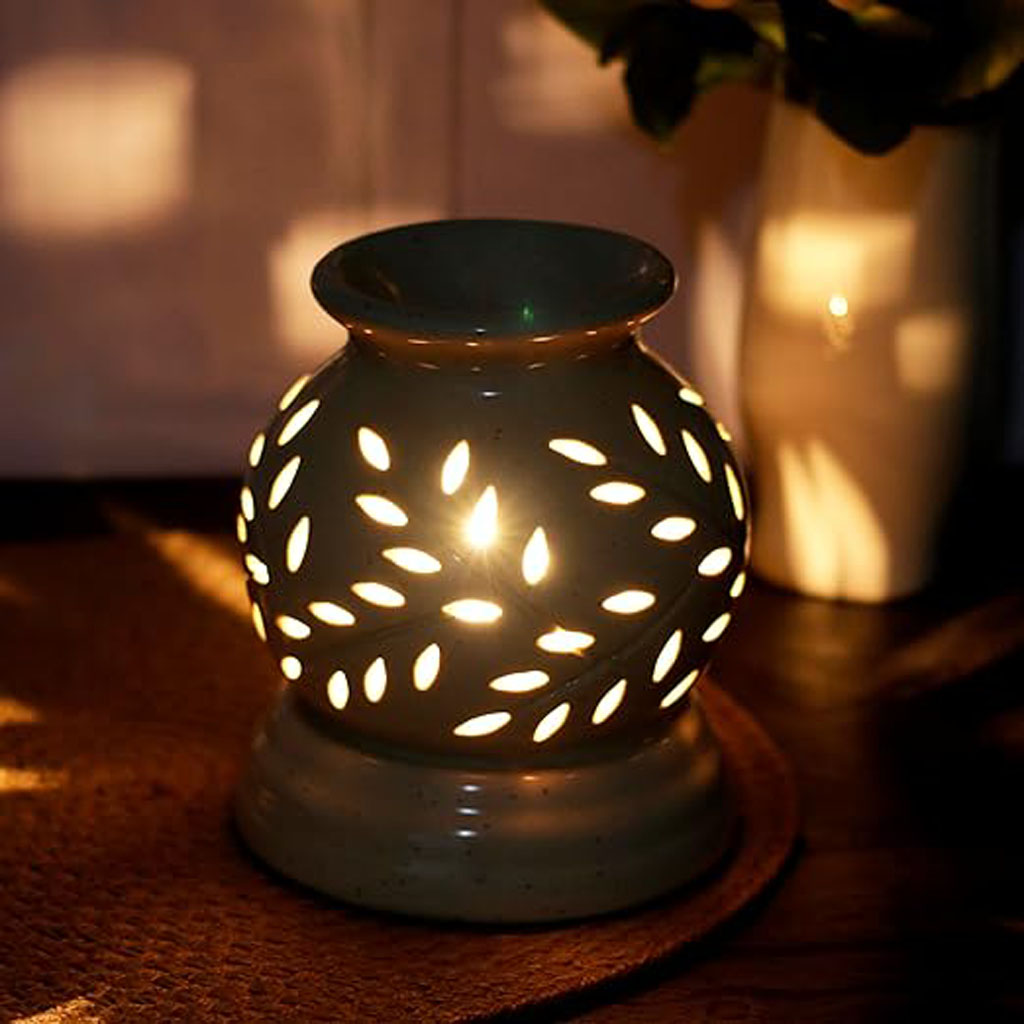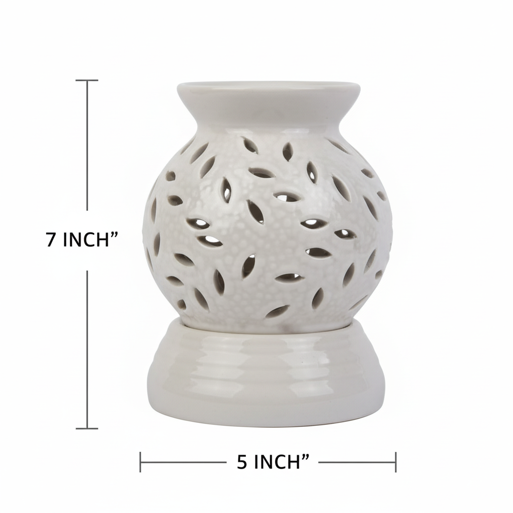 Enhance your home’s ambiance with this elegant Ceramic Electric Oil Diffuser. This 2-in-1 home fragrance decor piece features a built-in electric bulb (Mirchi light) that provides both gentle heat and a warm, decorative glow.